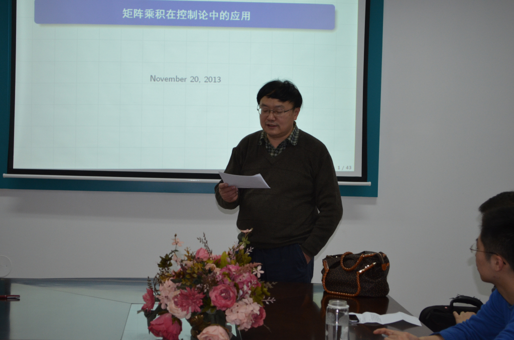 2014年11月11日上午 8:30-9:30,山东大学MK体育冯俊娥教授在格物楼503做了题为《各种矩阵乘积在控制理论中的应用》的学术报告,报告由田波平教授主持,数学系十余位师生听取了报告并进行了热烈的讨论。