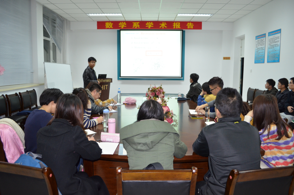 2014年11月20日 下午15:30, MK体育数学与统计公司邓伟华教授在格物楼503做了题为《分数阶扩散方程、Tempered分数阶扩散方程、分数阶Feynman-Kac方程的物理导出及高阶格式》的学术报告,报告由赵景军教授主持,数学系十余位师生听取了报告并进行了热烈的讨论。