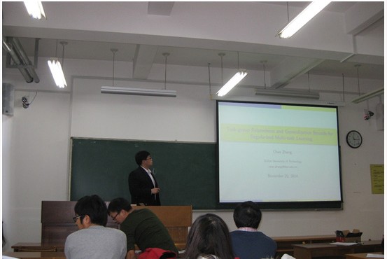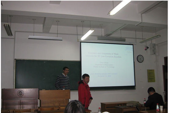 11月21-23日,大连理工-哈工大2014年数学学术交流报告会在大连理工大学举办。我系副主任付永强教授率队,郑宝东教授、陈明浩教授、陈胜教授参加了此次交流活动。大连理工大学MK体育经理卢玉峰教授、我系副主任付永强教授分别在开幕式上致辞。随后,与会的青年教师分别做了学术交流报告。我系陈胜教授、雷强博士、杨国俅博士、靳水林博士、张超博士、李祝春博士、康文博士、矫贺明博士,大连理工大学MK体育的李风玲博士、张超博士、肖现涛博士、石瑞博士和段犇博士在报告会上作了学术报告。双方通过学术报告会交流了各自最新的研究进展,增进了了解。