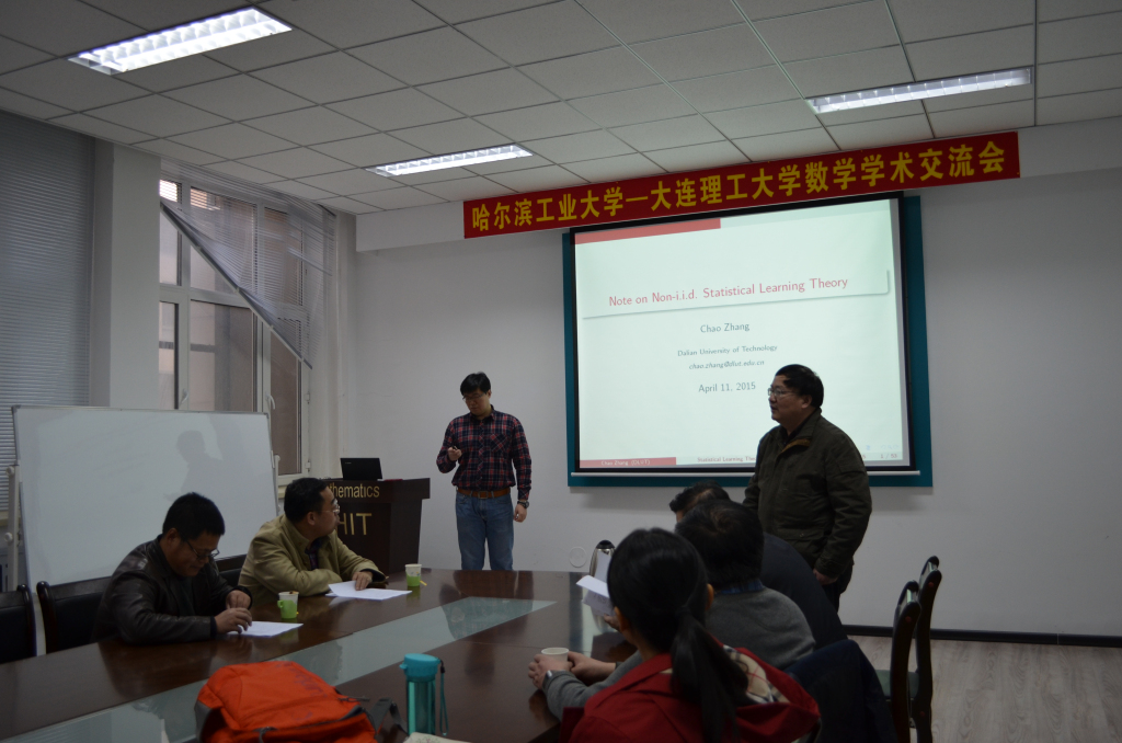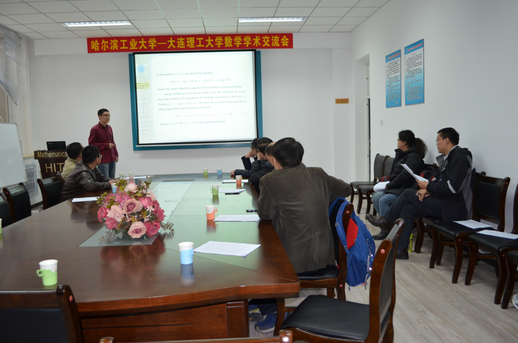 2015年4月11日,Mksport体育-大连理工大学数学学术交流会在Mksport体育数学系会议室举行。大连理工大学MK体育经理卢玉峰教授、书记刘西民教授等十多位教师,哈工大数学系吴勃英教授、付永强教授等二十余位师生参加了本次学术交流会。交流会开幕仪式由付永强教授主持,大连理工大学卢玉峰教授和哈工大数学系吴勃英教授先后为交流会致辞,并介绍了本校数学学科的发展现状和趋势,指出两校数学有很多共同点,以及对两校数学学科的进一步交流和发展进行了展望。开幕式结束后,两校的代表做了9场精彩的报告,双方就各自感兴趣的问题进行了探讨,在座师生都表示受益匪浅。 本次学术交流会成功的在学术成果、教科研管理和人才培养等方面进行了交流,彼此增强了共识,增进了两校数学的友谊。在双方教师的共同努力下,本次交流会圆满结束!