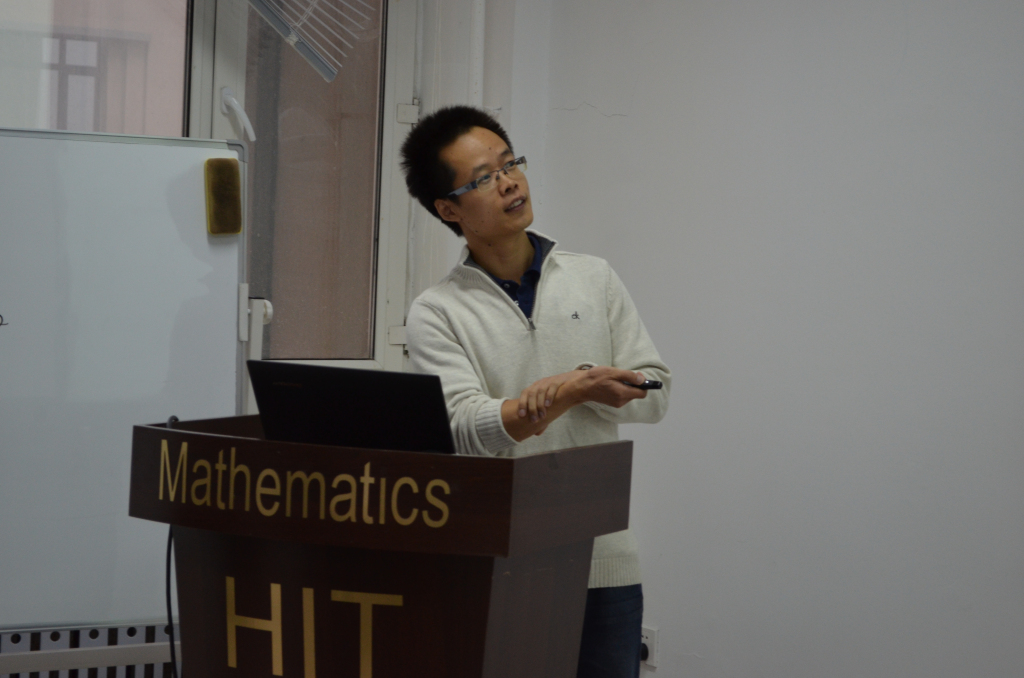 2015年9月25日15:00,哈工大数学系工科数学分析教学中心张毅超教授在数学系会议室(格物楼503)做了题为《 Modular Forms and Weakly Holomorphic Modular Forms》的学术报告,报告由张超老师主持,数学系10余位师生听取了报告,并进行了热烈的讨论。