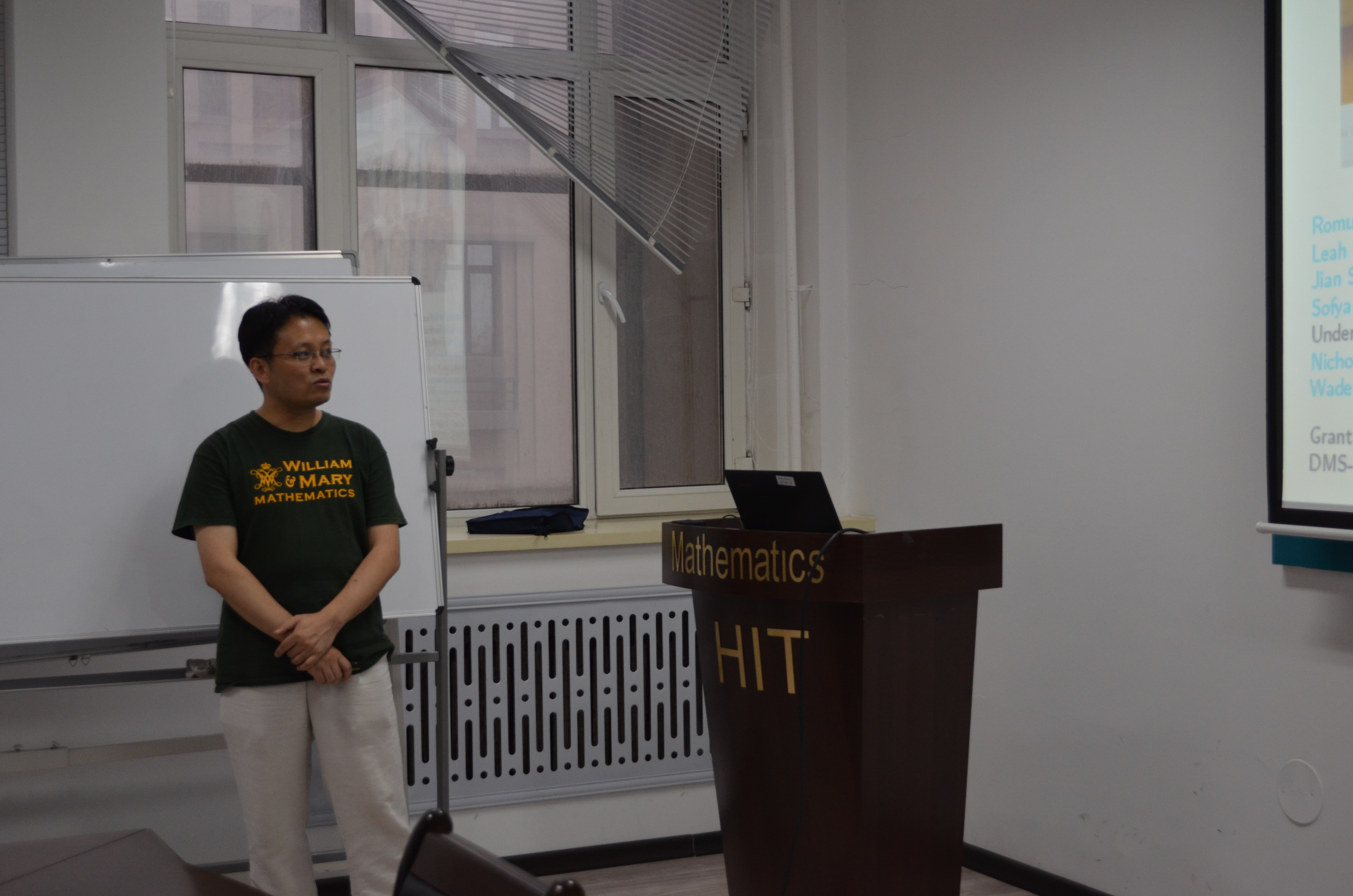 2016年7月25日下午,美国威廉玛丽公司史峻平教授在数学系会议室(格物楼503)做了2两场精彩的报告,题目分别为:《Modeling Chesapeake Bay oyster population》《Hopf Bifurcation in Reaction-Diffusion Population Model with Spatial-Temporal Nonlocal Delayed Growth Rate》,报告由孙杰宝老师主持,数学系20余位师生听取了报告并进行了热烈的讨论。