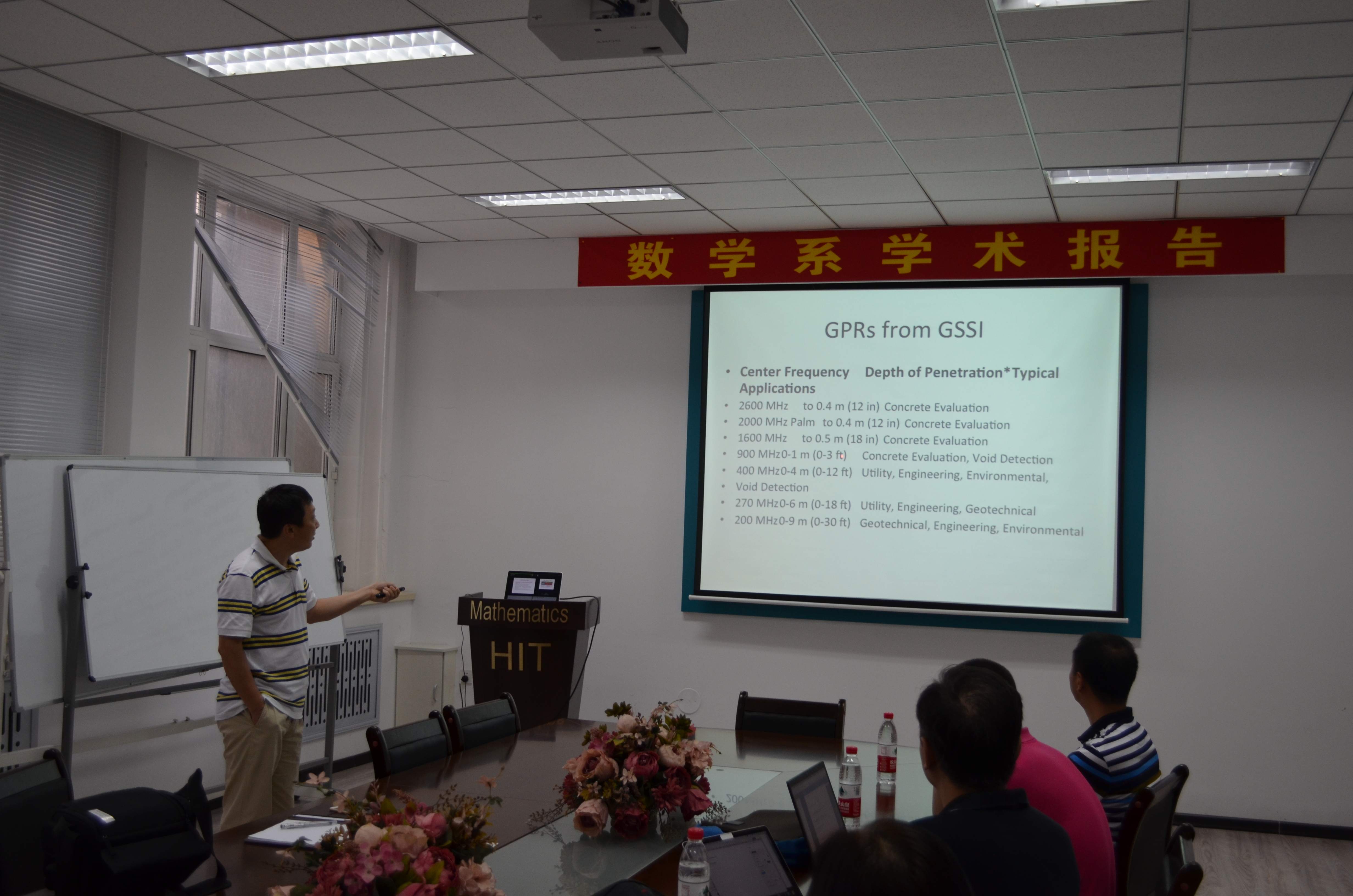 2016 年7月27日下午14:00-15:00,美国密歇根科技大学(Michigan Technological University)数学系终身教授孙继广在数学系会议室(格物楼503)作了题为《Through-Wall Detection of Human Being's Movement by UWB Radar》的学术报告,报告由郭玉坤老师主持,数学系10余位师生听取了报告并进行了热烈的讨论。