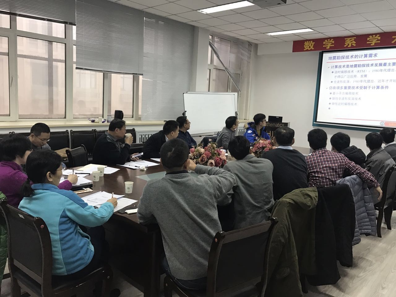 本次会议邀请了中国石油大学(华东)、西安交通大学、同济大学、湖南大学、中科院计算技术研究所、中石油东方地球物理公司等10余家单位的14位专家进行交流并作会议报告,包括来自中石油东方地球物理公司的余刚教授、中国石油大学(华东)杜启振教授、来自西安交通大学海洋石油勘探国家工程实验室的陈文超教授,同济大学的程玖兵教授。会议期间很多专家都做了在相应研究领域的精彩报告,并进行了非常热烈的讨论,对相应学科水平的提高有着积极促进的作用。同时,数十名本系的员工也积极来听取本次研讨会,受益匪浅。