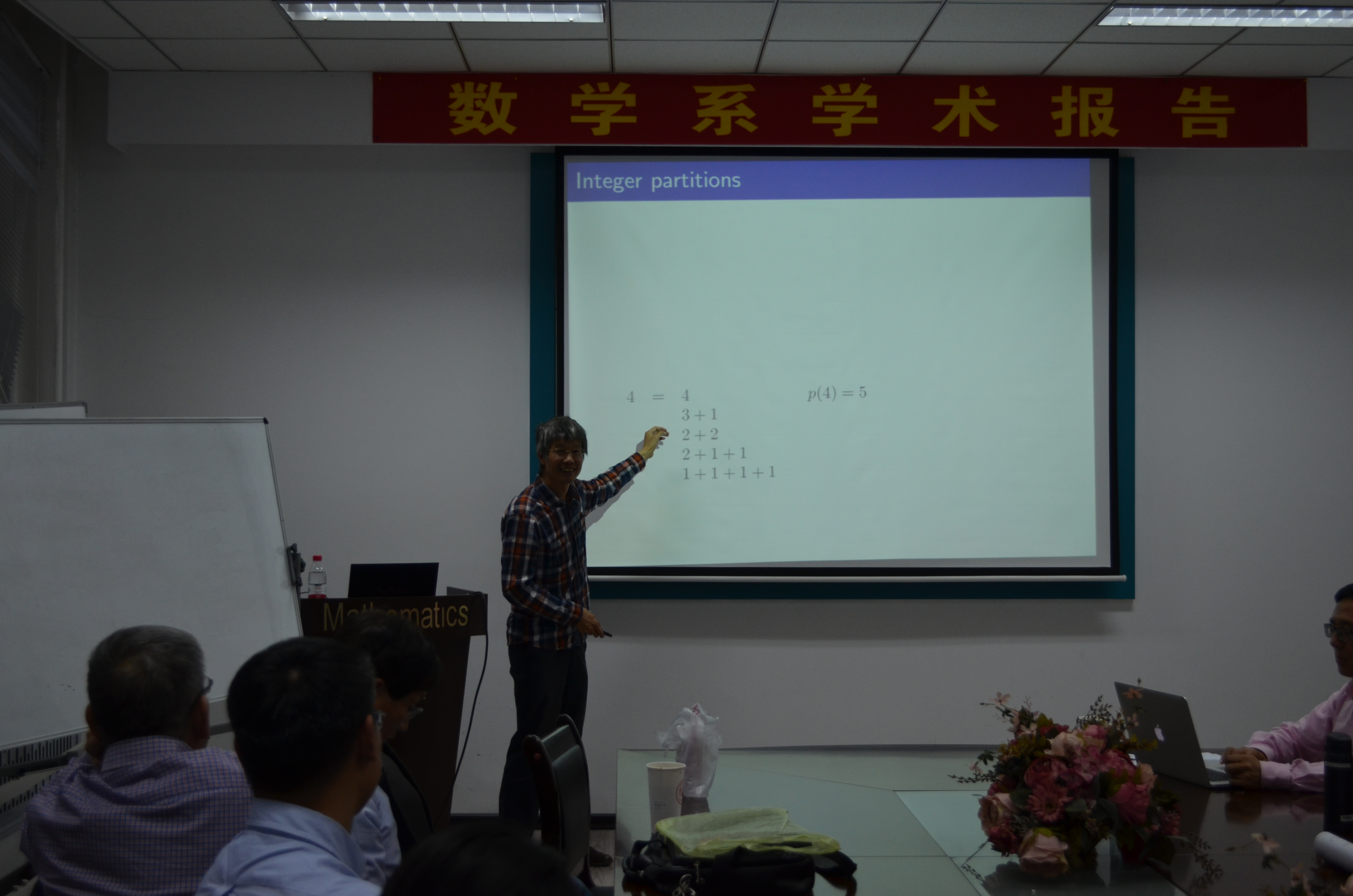 应Mksport体育数学研究院许全华教授邀请,2017年6月1日下午16:00—17:00在格物楼503会议室,法国斯特拉斯堡大学韩国牛教授来访数学系并做学术报告。报告题目:Combinatorics on integer partitions,报告由许全华教授主持,数学系三十余位师生听取了报告,并进行了热烈的讨论。