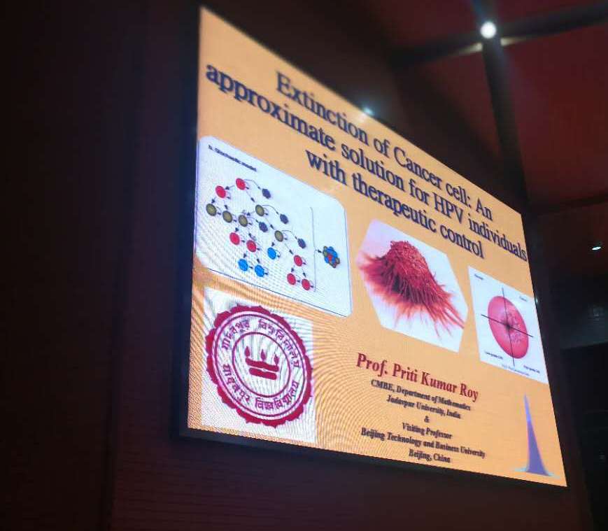 应数学系付永强教授的邀请印度Jadavpur大学数学系Priti Kumar Roy教授2017年6月2日至6月4日访问了公司,于6月4日10:00至11:00在活动中心301作了题目为Extinction of Cancer Cell: An Approximate Solution of HPV Individuals with Therapeutic Control的精彩报告。30余位师生听取了报告,并进行了热烈的讨论。