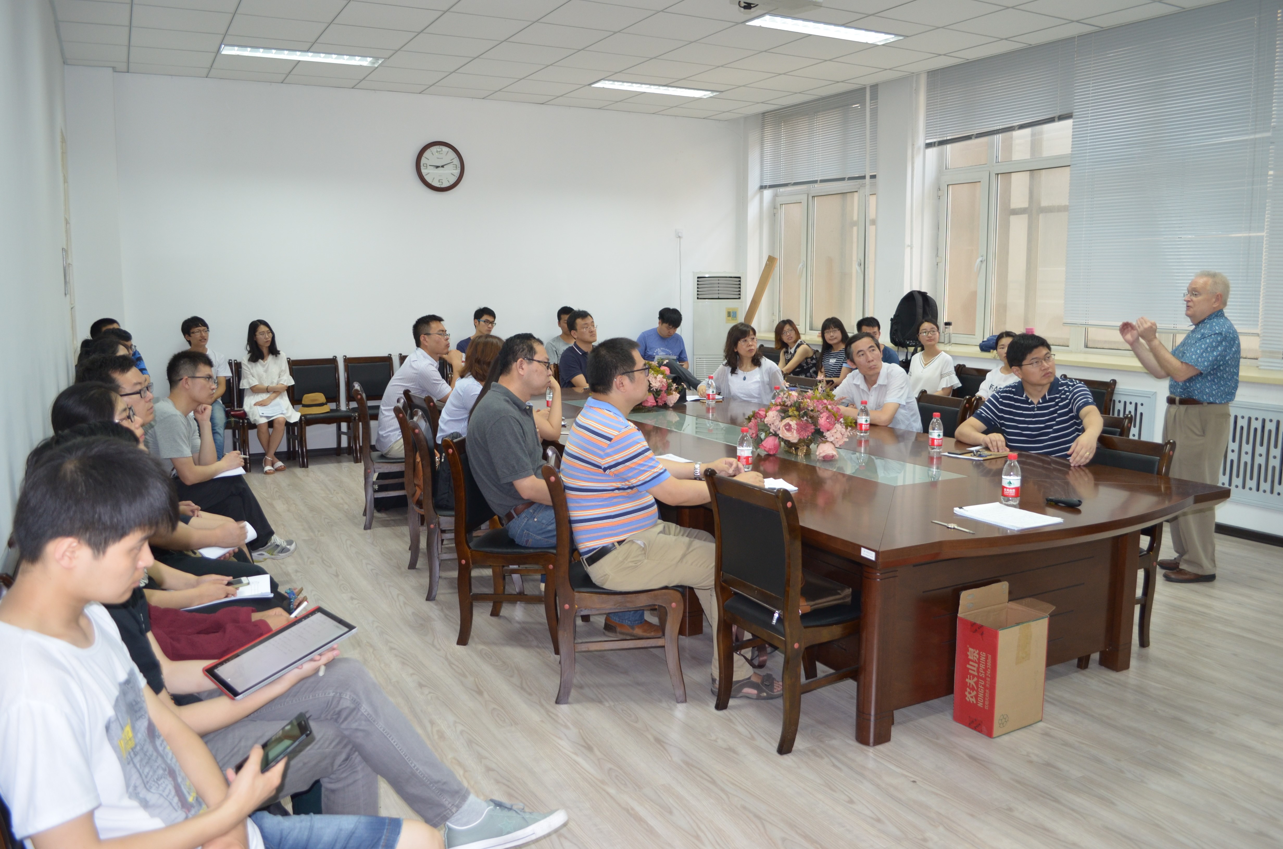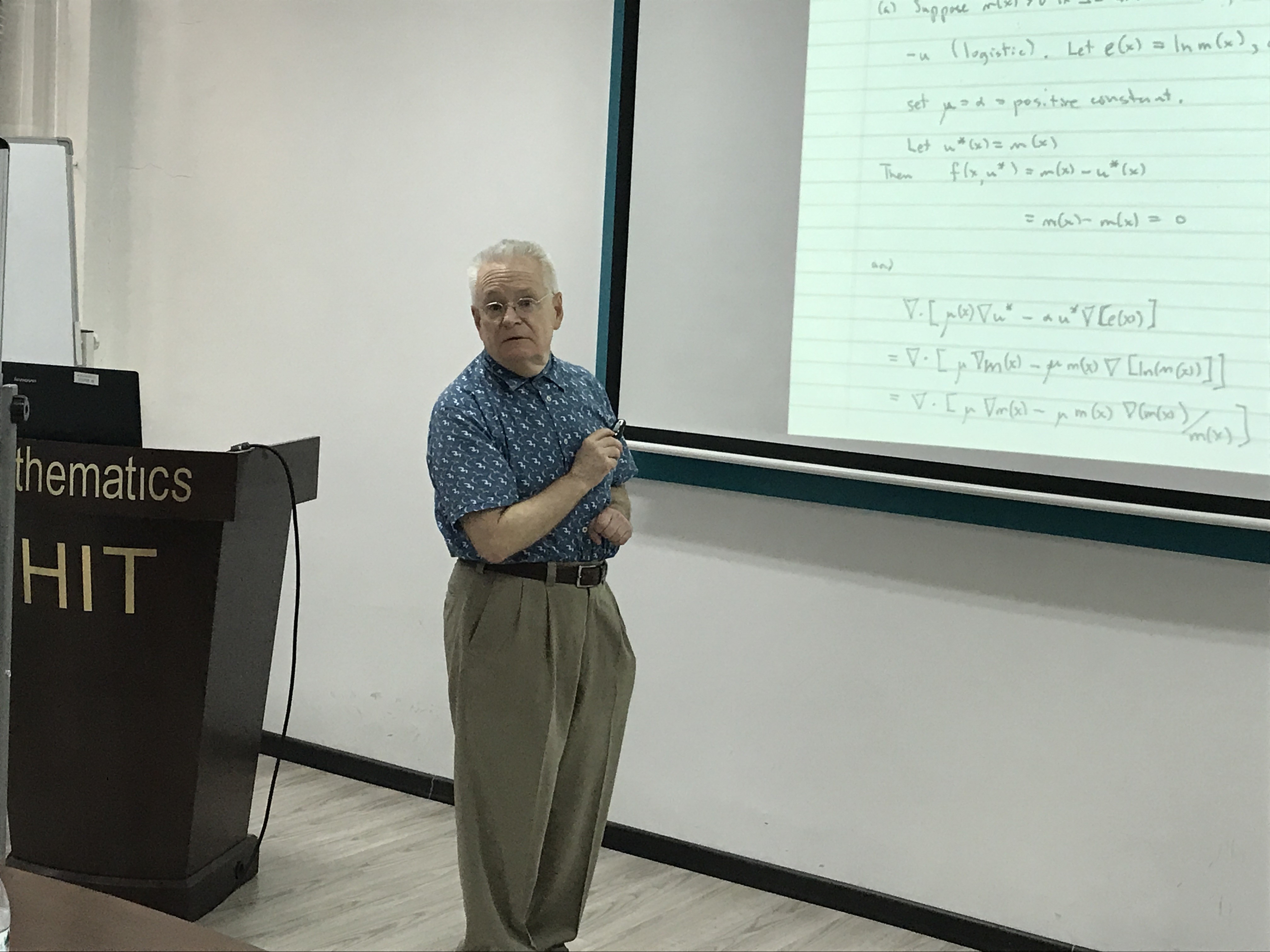 作为数学系SCI期刊编委校园行活动一部分,美国迈阿密大学数学系系主任、著名生物数学家Robert Stephen Cantrell 教授于2017年6月27-30日来哈访问交流,并做系列学术报告。从反应扩散方程的角度来探讨不均匀环境对种群动力学的影响,包括模型的建立和分析,介绍了关于Lotka-Volterra竞争系统的一些最新研究进展,并提出一些有趣的具有挑战性的问题。参加学术报告的师生来自哈尔滨地区的几个公司,包括哈工大、哈工程、哈理工和黑龙江大学,期间开展了激烈的互动和讨论。此次活动受国际合作处资助,由数学青年教师联合会承办。