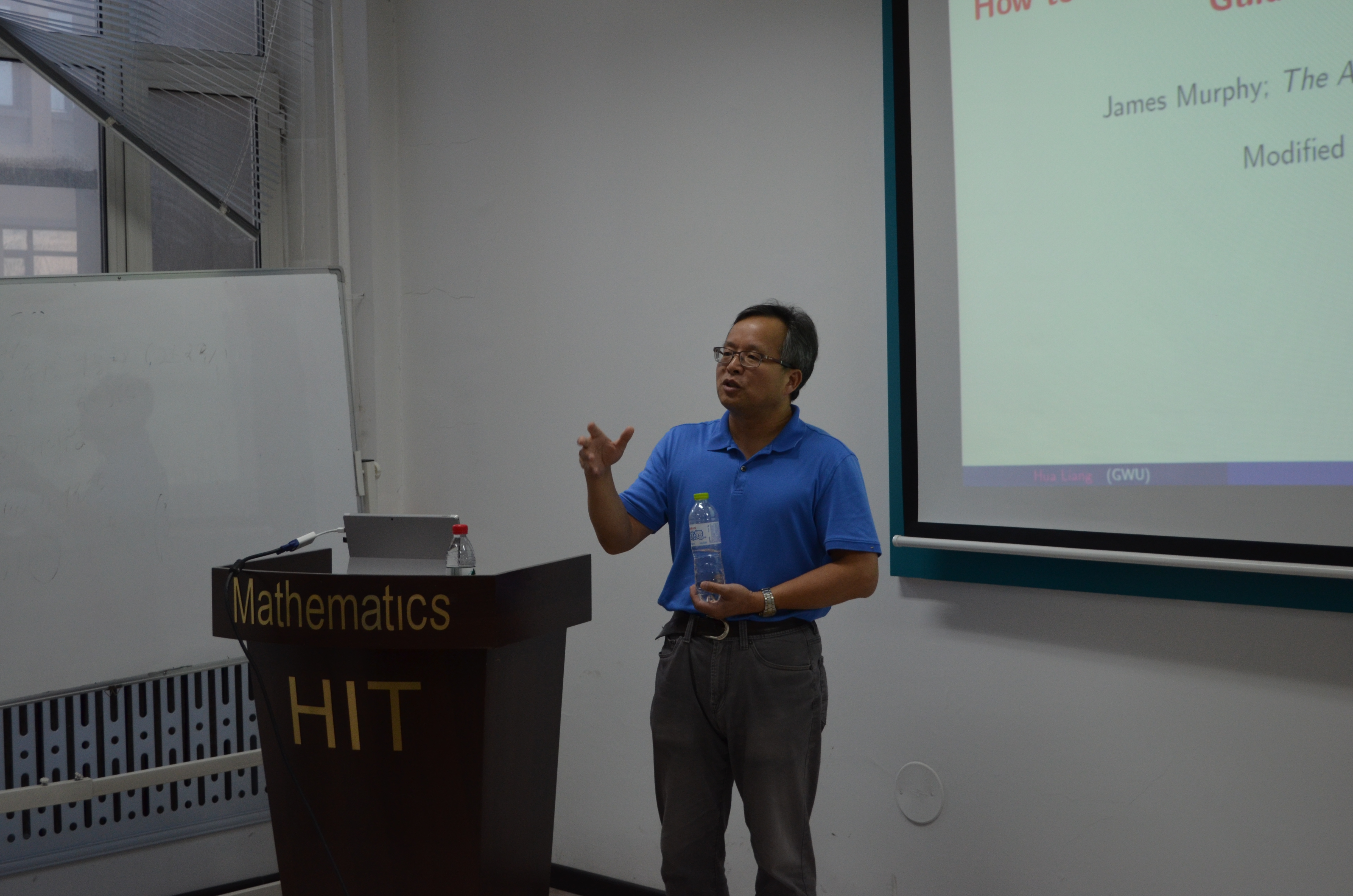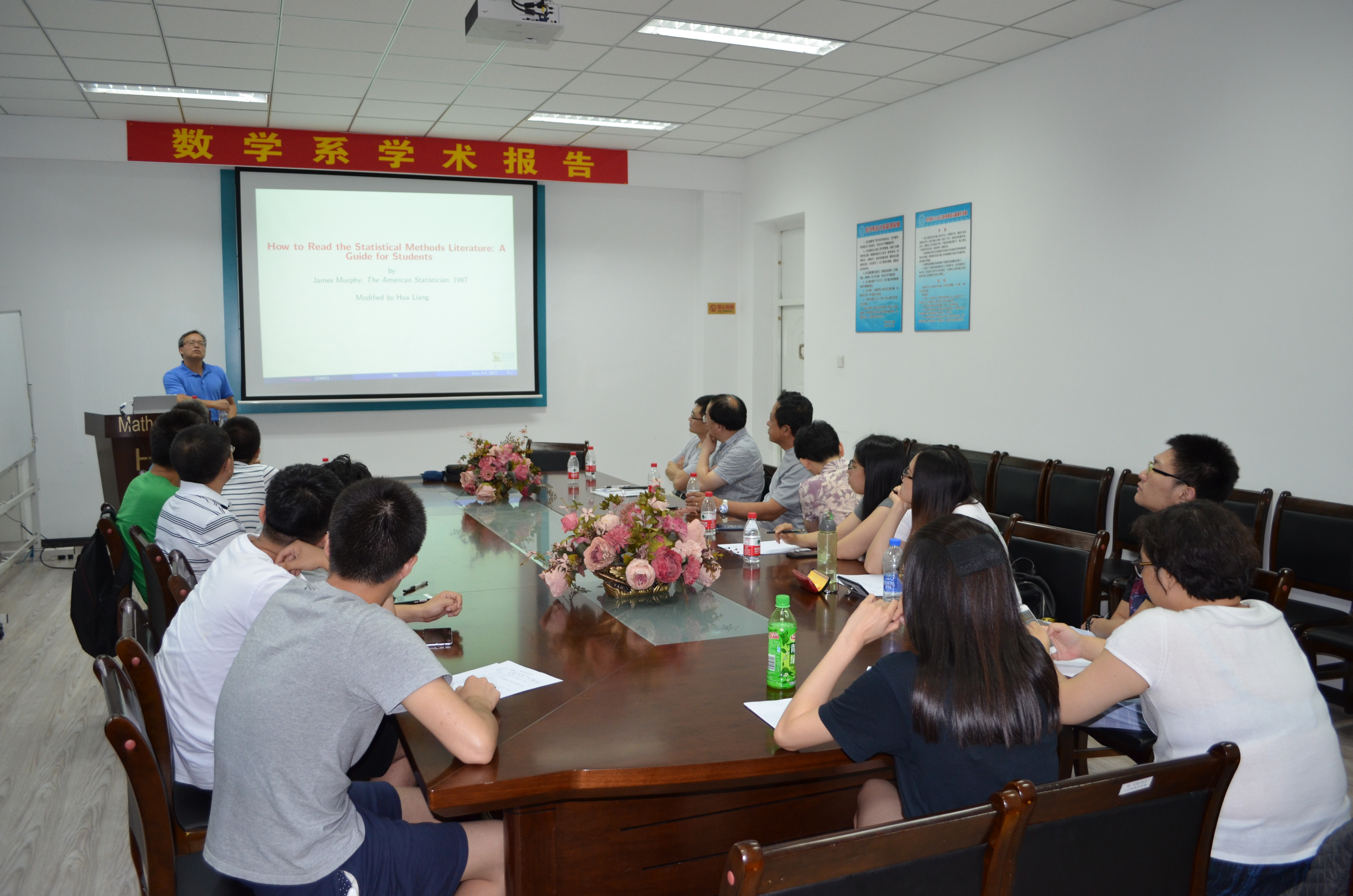 作为数学系SCI期刊编委校园行活动一部分,美国华盛顿大学统计系世界著名统计学者梁华教授受邀于2017年6月6日—8日将来哈工大数学系访问交流,并作系列学术演讲。2017年7月6日下午 14:30-16:00、16:10-17:40,梁华教授做了两个学术报告,分别从参数模型、非参数模型等角度来探讨半参数模型有效性,以及作为世界知名统计学者谈谈自己对从事科学研究工作的体会、教员工如何在高层次期刊上发表高水平论文等方面进行讲解。报告由田波平教授主持,数学系相关专业的二十余位师生参加了学术报告并展开了讨论。此次活动由国际合作处资助承办。