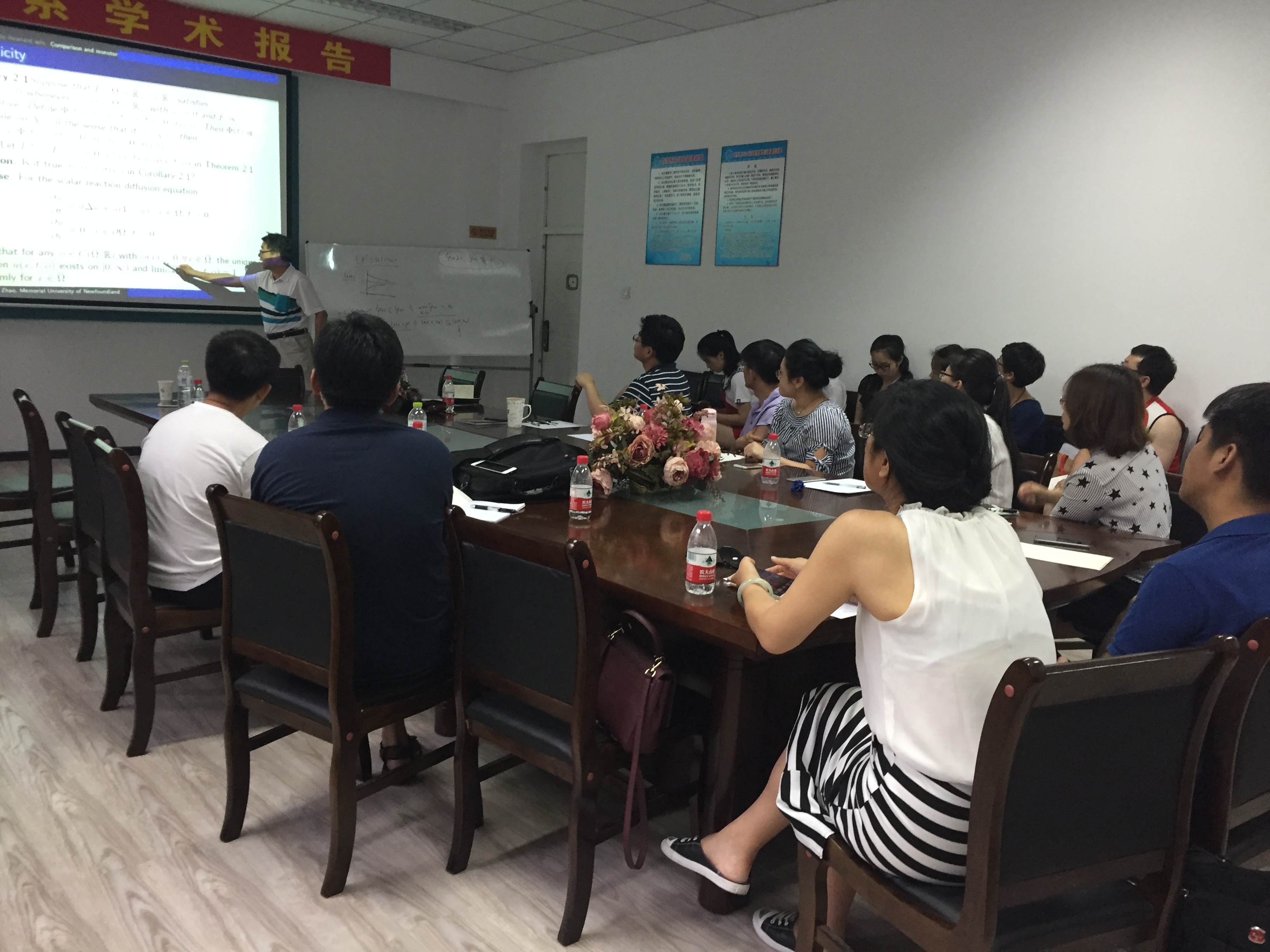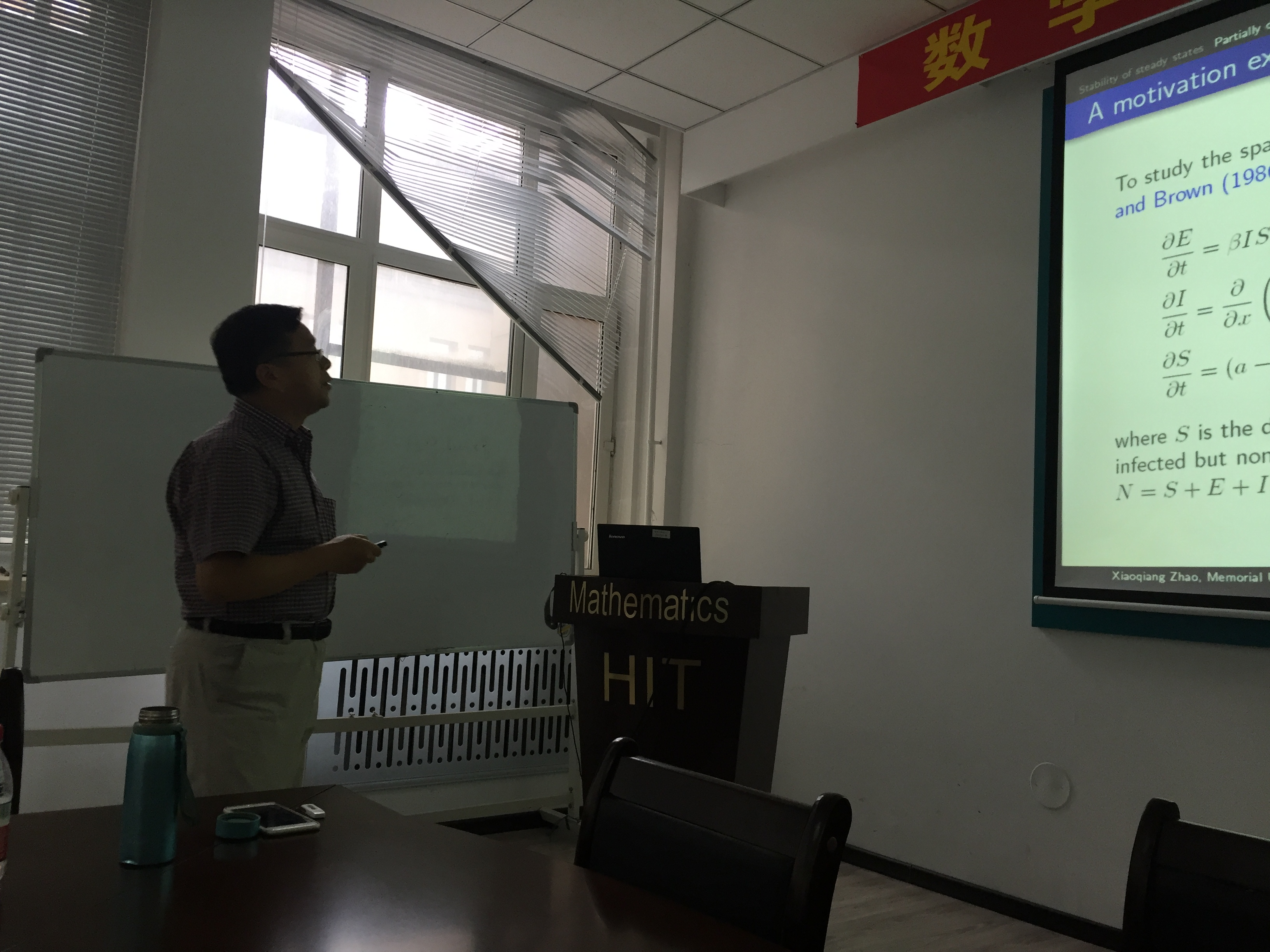 受国际合作处的资助,作为数学系SCI期刊编委校园行活动一部分,著名应用动力系统专家、加拿大纽芬兰纪念大学赵晓强教授应蒋卫华教授的邀请,于2017年7月1日至14日在Mksport体育数学系做访问交流。 赵晓强教授以反应扩散方程和动力系统研究中的几个热点问题为主题,在7日、9日、11日下午14:00-17:00,分别从反应扩散方程解的存在唯一性、正不变性、有界性、单调性等基本性质,稳定性与主特征值,吸引子和持久性,基本再生数,抽象泛函微分方程解映射的紧性等方面做了六个精彩的学术报告。报告由蒋卫华教授主持,相关专业的四十余位师生有幸参与讲座和讨论,报告也吸引了包括哈尔滨工程大学、哈尔滨师范大学、黑龙江大学、哈尔滨理工大学和东北林业大学的多位师生慕名前来参加。赵老师的系列报告系统、全面、细致、深入,师生们从中收获颇丰。
