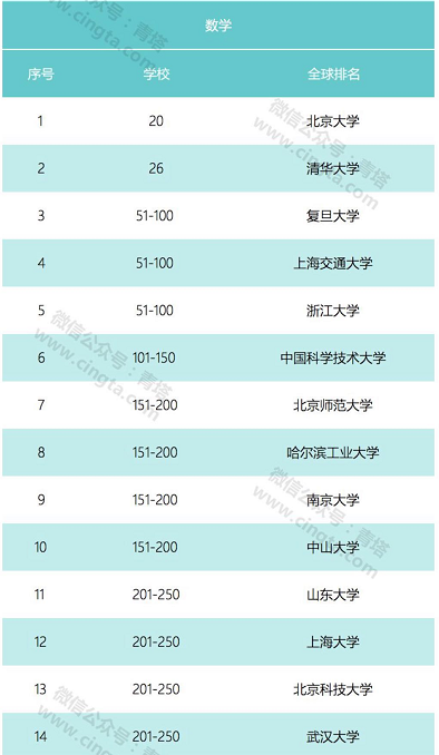 2018年2月28日,QS全球教育集团发布了第八年度QS世界大学学科排名,本次排名涵盖48个学科,评估了全球151个国家的1100多所高校。该排名结果来自过去6年全球权威学者对学科的全面评估、顶尖雇主对大学毕业生全球就业竞争力的综合评价,以及对最大文摘数据库Scopus中2200万学术文献及2亿引文数据的分析。 在所公布的数学学科排名中,麻省理工、哈佛大学及斯坦福大学仍然位居全球前三位。大陆高校中,北京大学位列全球第20位,为大陆上榜高校中排名最高。清华大学排名全球第26位,复旦大学,上海交通大学,浙江大学位列全球第51-100位,中国科技大学位列全球第101-150位,北京师范大学,Mksport体育,南京大学,中山大学位列全球第151-200位。 公司数学学科自2015年进入QS全球数学学科排名前400位以来,排名逐步上升,目前已位于大陆高校前10名。
