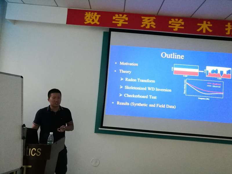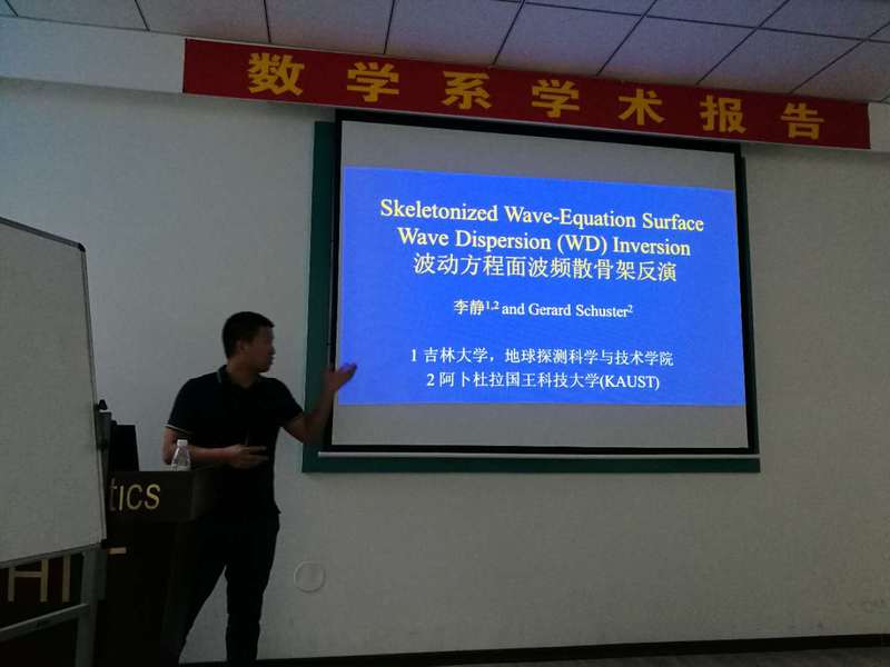 受数学系郭玉坤副教授邀请,吉林大学地球探测科学与技术公司李静副教授于近期访问了公司,并于2018年7月27日下午16:00-17:00在格物楼503报告厅进行了一场学术报告。李老师以Wave-equation skeletonized surface waves inversion为题进行了学术讲座,介绍了相关领域内的最新进展和成果。报告由郭玉坤副教授主持,数学系的师生在报告现场与李老师进行了热烈的交流与讨论。