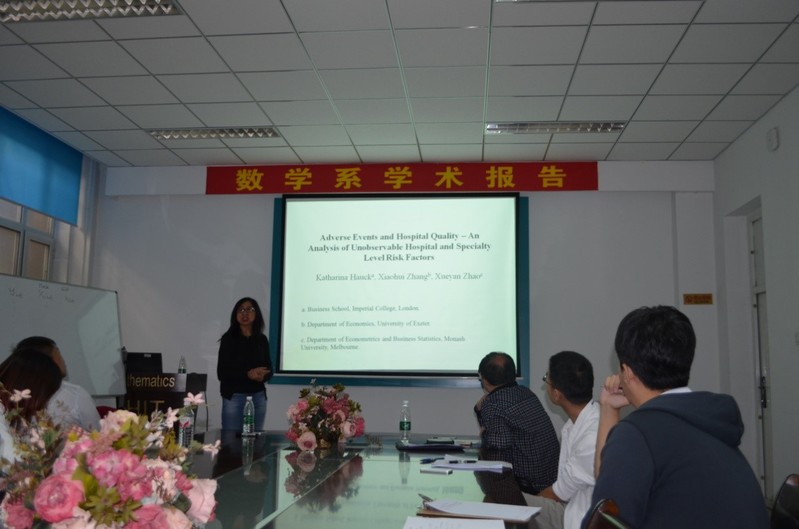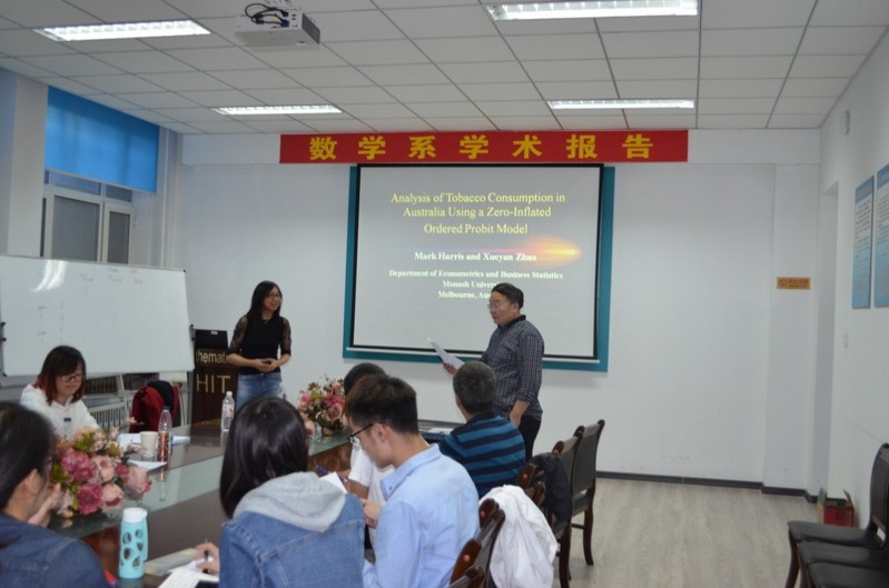 受公司国际合作与交流基金资助,应数学系田波平教授邀请,澳洲莫纳什大学赵雪燕教授于2018年9月6日-9月24日来哈工大数学系进行了成功的学术访问,访问期间,赵雪燕教授举行了经济计量和统计模型系列专题讲座并与我系师生进行了多次学术交流活动。