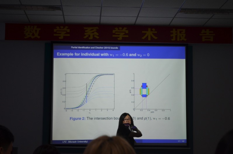 第一场报告时间为9月17日下午14:00-17:00,地点为格物楼503室,总共两个报告。赵教授分别以“Bivariate Probit Model, Partial Identification and Treatment Effect of Health Insurance on Dental Visits”、“Health status and labour market outcome: empirical evidence from Australia”为题系统地介绍了经济计量中的双变量Probit模型,其在医疗卫生及经济政策效应分析中有广泛的应用。