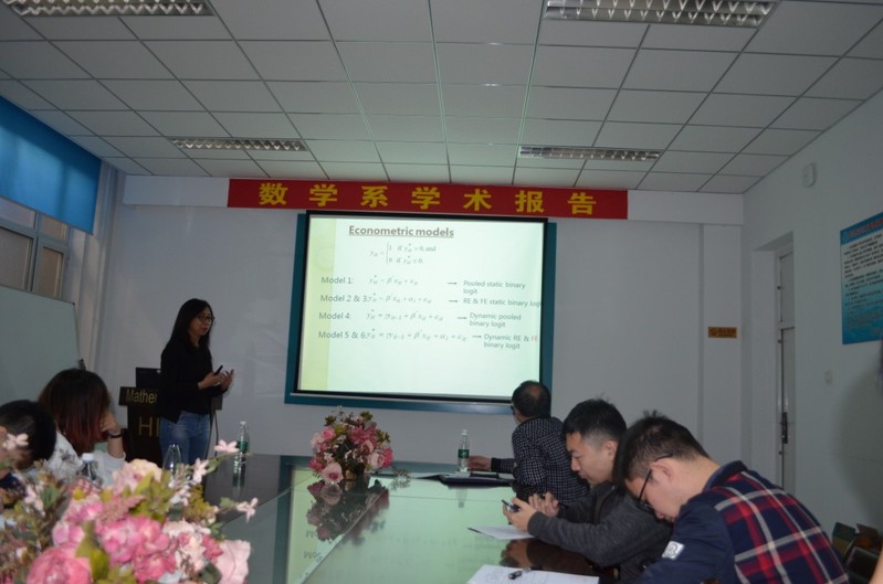 第三场报告时间为9月18日下午14:30-16:00,地点为格物楼503室,报告题为“A zero-inflated ordered probit model, with an application to modelling tobacco consumption”,赵教授的这个报告主要内容已经发表在计量经济类顶级期刊Journal of Econometrics上。该报告围绕社会调查中不可避免的问题——“0数据的非等价性”,即对调查结果为0的不同原因进行分类分析,考虑个体经济因素分析调查结果,并就其研究工作给政府、公司及企业等运营,发展给予了良好的建议。