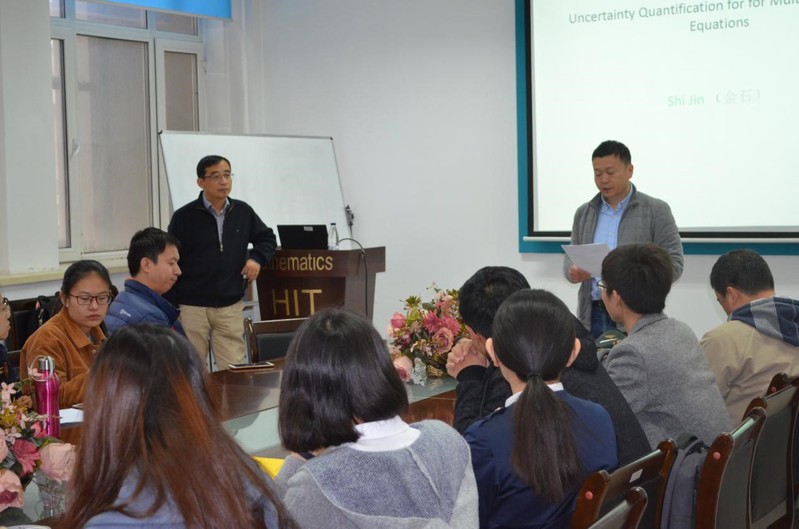 报告后,数学系师生与金石教授进行了座谈,座谈内容为多尺度动力学方程的不确定性量化中的可行研究方向。经过座谈,数学系与金石团队达成了初步的合作意向,包括学术论文合作及定期互访等等。