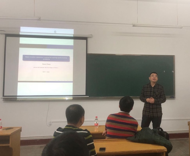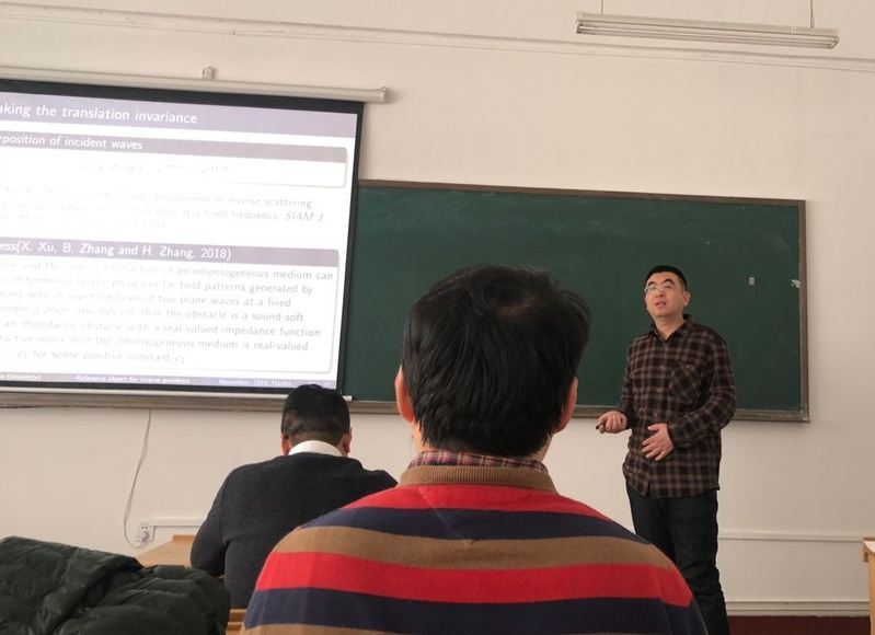应数学系郭玉坤副教授的邀请,吉林大学MK体育张德悦教授于2018年11月18日至20日到公司进行学术访问。张德悦教授分别于18日下午14:00-15:00和20日上午9:00-10:00在格物楼522报告厅做了两场学术讲座,报告内容涉及声波反散射问题、无相位数据问题的参考球技术、以及基函数展开法求解反问题的算法框架及其应用等课题。报告由郭玉坤副教授主持,数学系相关方向的师生参加了报告会并与张德悦教授进行了热烈的学术交流与讨论。