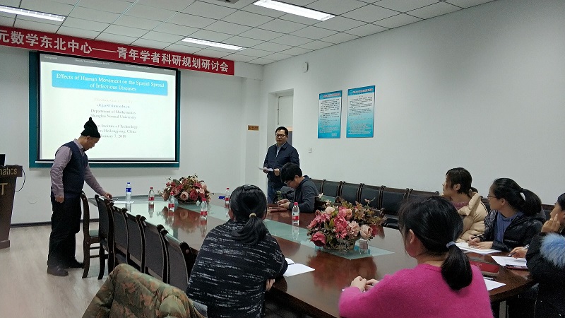 2019年1月7日下午,上海师范大学数学系高道舟教授在格物楼503会议室做了传染病空间传播动力学的精彩报告,题目为: “Effects of Human Movement on the Spatial Spread of Infectious Diseases”。报告由数学系刘胜强教授主持,数学系师生十余人听取了报告并进行了热烈的讨论。