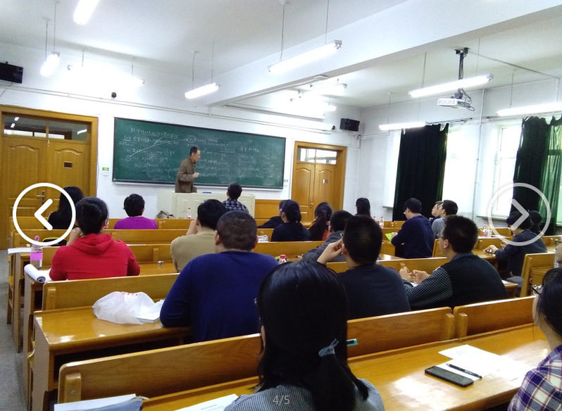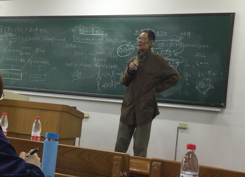 第一场报告时间为4月9日下午15:00-16:30,诚意楼406。郭聿琦教授以板书的形式向师生们介绍了“华罗庚定理与若干华-型定理”。