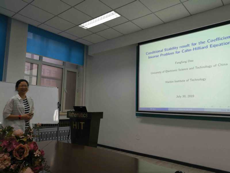 应MK体育郭玉坤副教授的邀请,电子科技大学窦芳芳副教授于2019年7月27至31日访问了公司,并于2019年7月30日下午15:00-16:00在格物楼503报告厅进行了一场学术讲座。窦老师的报告介绍了Cahn-Hillard方程系数反问题稳定性的相关研究进展。报告由郭玉坤副教授主持,MK体育的师生在报告现场与窦老师进行了热烈的交流与讨论。