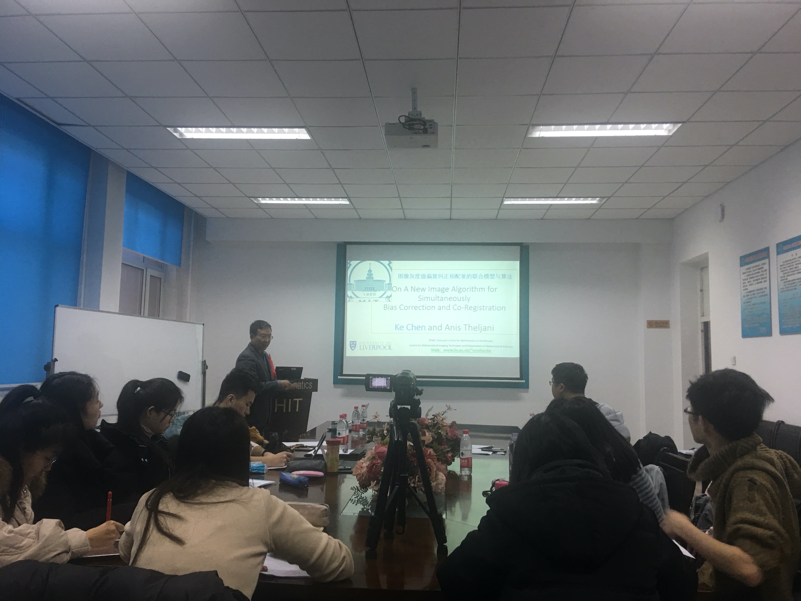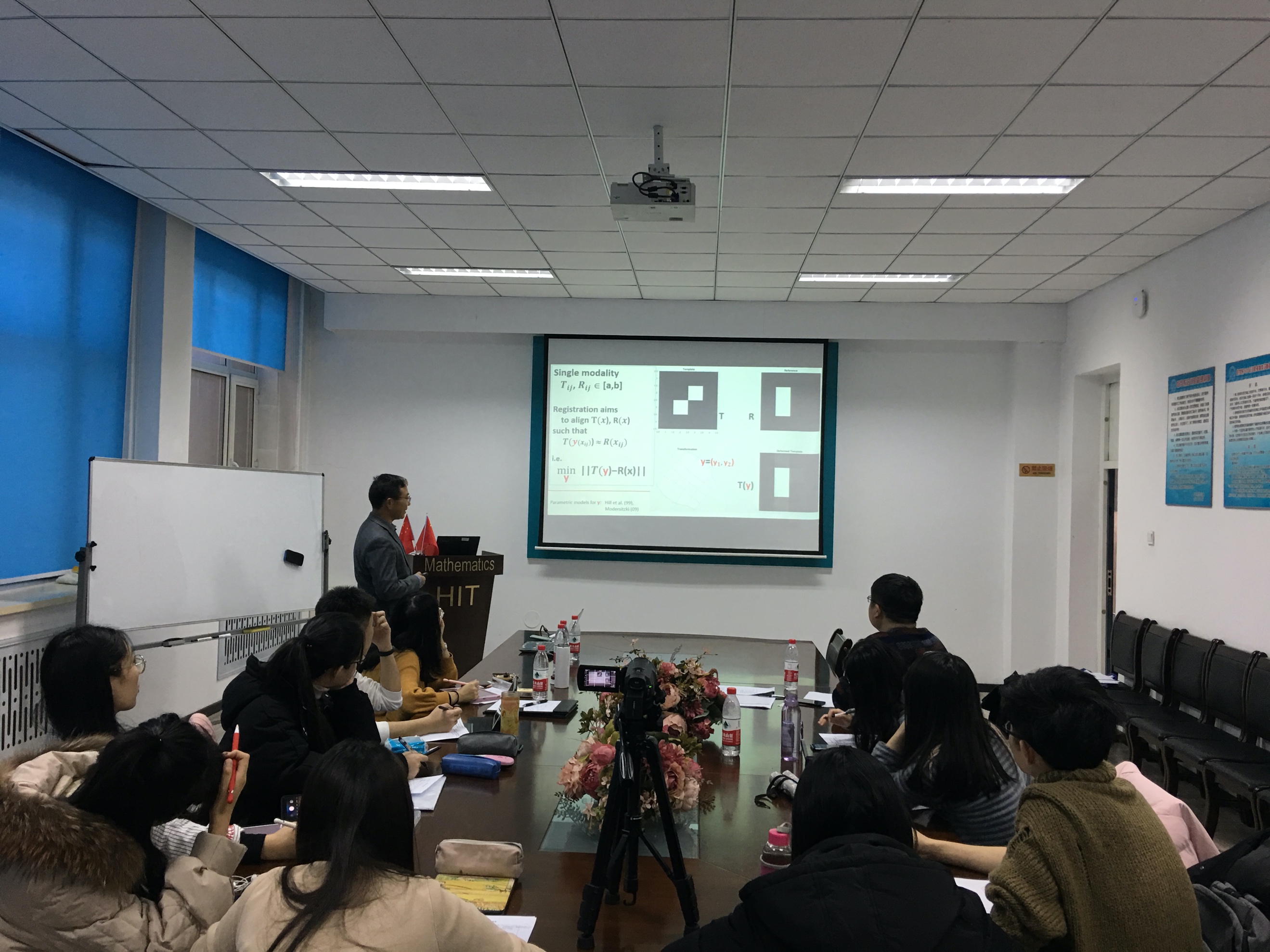 应MK体育郭志昌副教授邀请,2020年1月6日(周一)14:00—15:30及2020年1月8日(周三)14:00—17:15,英国利物浦大学陈柯教授在格物楼503会议室分别做了题目为:On Optimization Models and Methods for Inverse Problems from Imaging、On A New Image Algorithm for Simultaneously Bias Correction and Co-Registration:Part I、On A New Image Algorithm for Simultaneously Bias Correction and Co-Registration:Part II的三个报告。报告介绍了图像配准及分割等问题的优化模型及算法,以及图像配准中的偏差纠正预处理技巧。陈柯教授是英国IMA Fellow、御批数学家,主要研究应用数学相关问题的新颖计算模型以及相关算法的开发和分析,已经在SIAM J. Sci. Comput.、IEEE Transactions on Image Processing、SIAM J. Numer. Anal.等国际顶级杂志上发表论文170余篇。数学系郭志昌副教授主持了报告,相关研究方向的20余位师生参会。陈柯教授的报告内容生动详实,深入浅出,报告结束后,大家还进行的热烈的讨论,整个报告内容博得了师生们的一致好评。