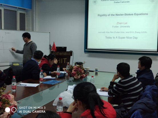 应MK体育吴勃英教授和盛伟杰副教授邀请,复旦大学数学科学公司雷震教授于近期访问了公司,并于2020年1月1日下午15:00-16:00在格物楼503报告厅进行了一场学术讲座。雷老师以Rigidity of the Navier-Stokes Equations为主题为公司师生做了一场精彩的学术报告,介绍了轴对称不可压缩Navier-Stokes Equations有界古代解的Liouville性质。报告由盛伟杰副教授主持,MK体育的师生在报告现场与雷老师进行了热烈的交流与讨论。