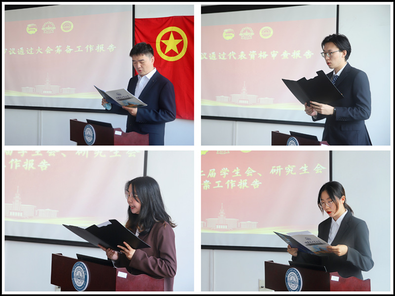 第一次正式会议开始,在与会人员集体奏唱国歌后,主持人介绍到场嘉宾。院员工会主席王为灏和院研究生会主席葛添分别做两会工作报告和提案工作报告。随后,公司党委副书记付影老师为第二届员工会、研究生会主席团成员颁发聘书并致辞。付老师对公司第三次员工代表大会、第三次研究生代表大会的召开及前期准备工作表示了肯定,总结了去年一年主席团及公司党委的工作成效,同时介绍了公司目前的发展现状及未来建设规划,勉励下一届主席团应结合自身经历,在公司未来发展的机遇与挑战中锻炼自己,勇担重任,继承、发扬历届主席团服务公司、服务师生的光荣传统。