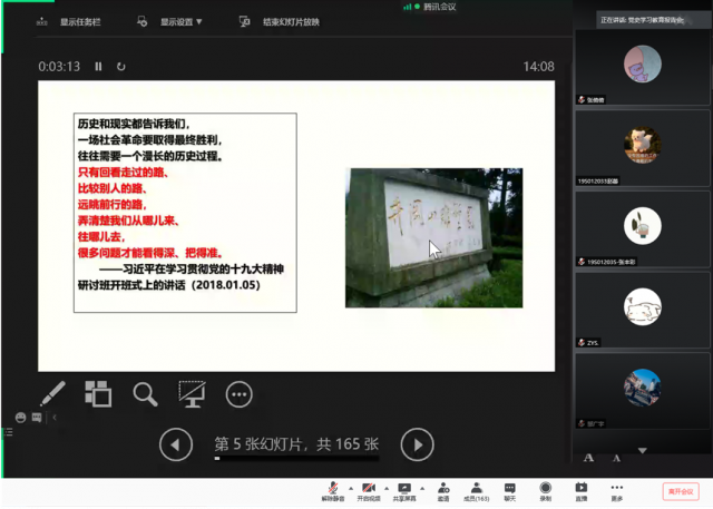 巩茹敏教授以《以信仰之光照亮前行之路——学习百年党史,铭记初心使命》为题,从十八大以来的五次专题教育讲起,向公司师生强调了本次党史学习专题教育的重要意义,回顾了党的光辉历程,从始终高扬马克思主义旗帜、始终站稳人民立场、始终选择独立自主道路、始终坚持党指挥枪、始终加强党的建设五个方面,探讨百年党史蕴含的丰富内涵,从血泪奋斗、一切为民、与时俱进、自我革新四个视角阐释百年党史彰显的鲜明特点,从知史爱党、学以致用的角度给出学习百年党史的现实思考。