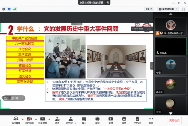 为庆祝中国共产党成立100周年,深入学习践行习近平总书记贺信精神,公司党委结合教职工理论学习,积极推进“人人讲党史”活动。69日下午,公司党委书记张凤淼同志讲授党史教育专题党课。公司领导班子成员、系主任、党支部书记等,以及基础数学教工党支部、基础数学博士生党支部全体党员参加现场学习,其余师生线上参加学习。