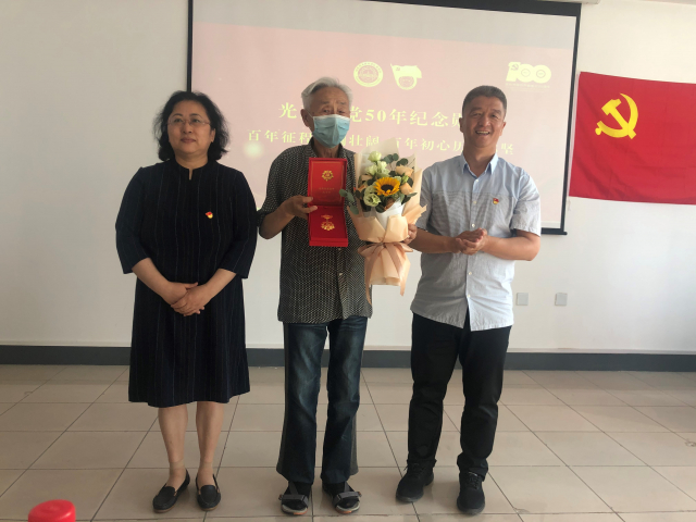 在中国共产党成立100周年之际,6月25日在理学楼308会议室,公司党委举行“光荣在党50年”纪念章颁发仪式,向老党员代表颁发中共中央“光荣在党50年”纪念章。