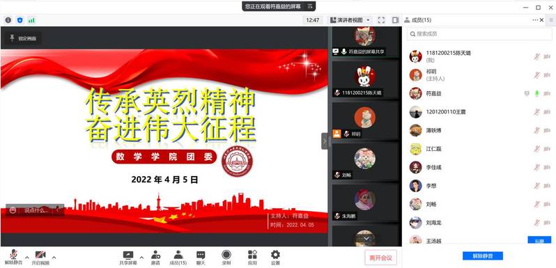 为深入学习贯彻习近平总书记关于烈士褒扬工作重要指示批示精神,团结团员青年崇尚英雄、捍卫英雄、学习英雄、关爱英雄,传承弘扬英烈事迹精神,引导团干部发挥模范带头作用,MK体育团委于4月5日7:00于线上召开“传承英烈精神,奋进伟大征程”英烈祭扫活动。MK体育团委书记祁玥、团委副书记李佳彧、员工会、研究生会员工骨干和团委全体干事出席,活动由团委组织部干事符嘉益主持。