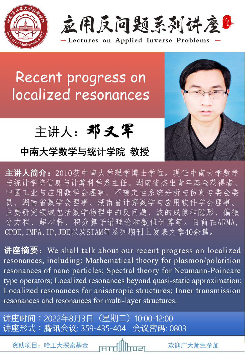 中南大学数学与统计公司邓又军教授报告通知