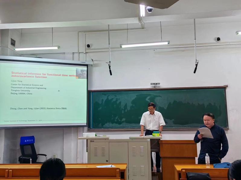 受讲席教授杨立坚教授和概率统计与运筹控制系主任田波平教授的共同邀请,本次报告由国际统计学会(ISI)主席Fabrizio Ruggeri教授与清华大学统计学研究中心杨立坚教授依次进行。公司国家高层次人才马坚伟教授致欢迎词,表达了对两位世界著名学者千里而来的欢迎和感谢。同时还有来自黑龙江大学、东北林业大学、东北农业大学、哈尔滨师范大学、哈尔滨商业大学等其它高校师生共同聆听了报告。