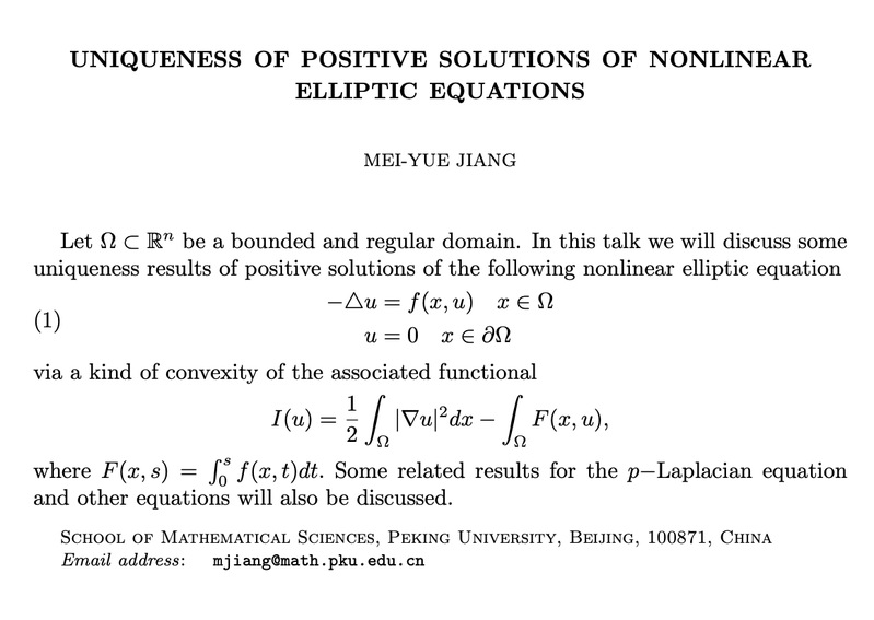 报告题目:Uniqueness of positive solutions of nonlinear elliptic equations
