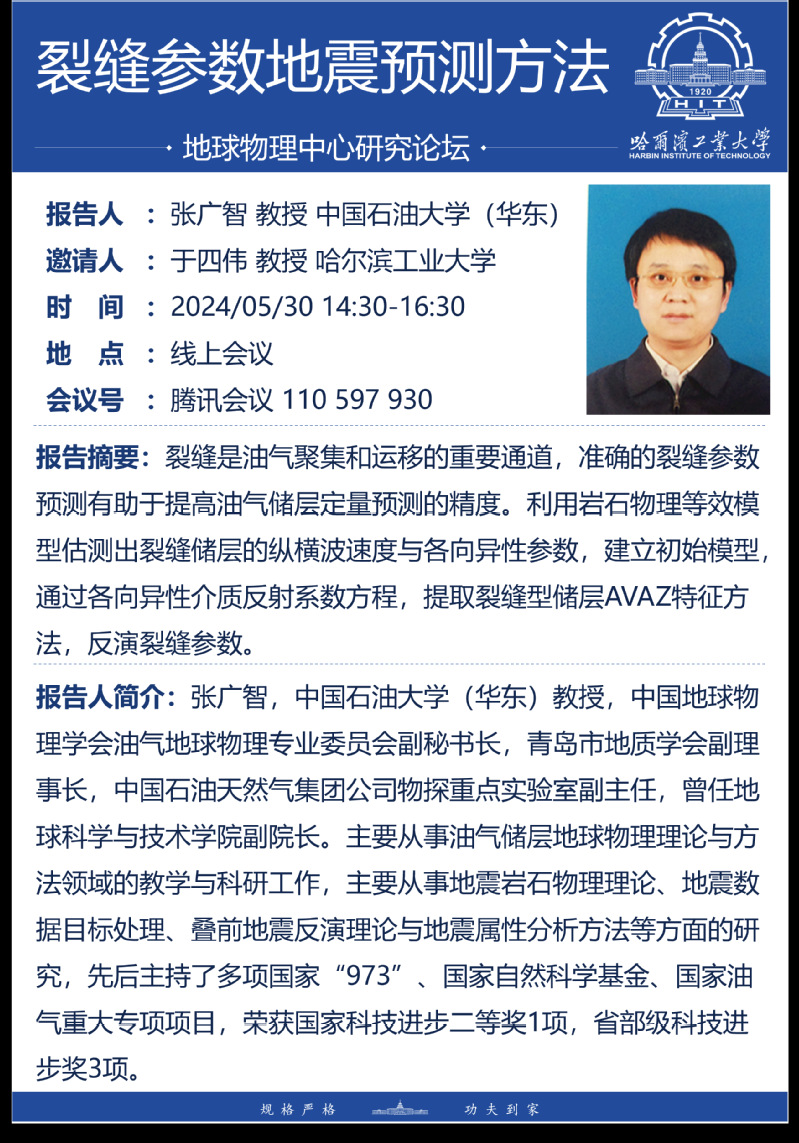 中国石油大学(华东)张广智教授报告通知